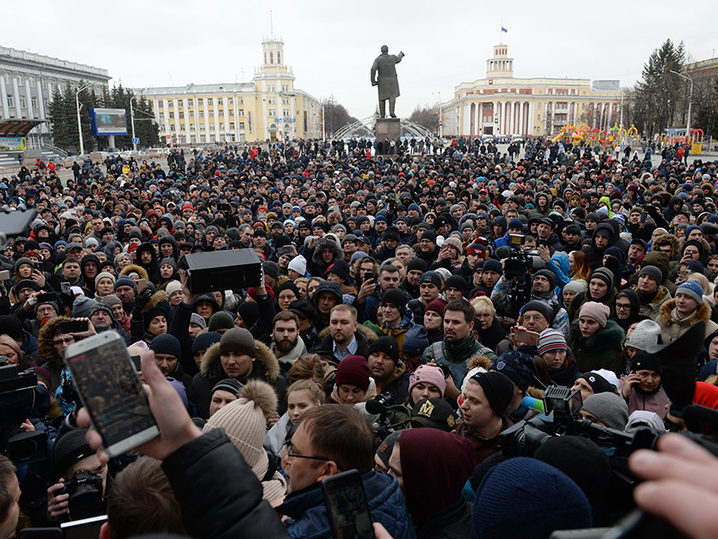Жители Кемерово, где при пожаре в торговом центре "Зимняя вишня" погибли 64 человека, больше 40 из которых - дети, утром 27 марта вышли на митинг к зданию областной администрации на площадь Советов. Собрание началось около 9 утра по местному времени (6 утра - по московскому). Митингующие потребовали от властей рассказать правду о трагедии, опубликовать полные списки погибших и пострадавших. Многие не верят в официально обнародованное число жертв. Люди также просят ответить на вопрос, почему спасателям не удалось помочь погибшим, передает "Интерфакс".