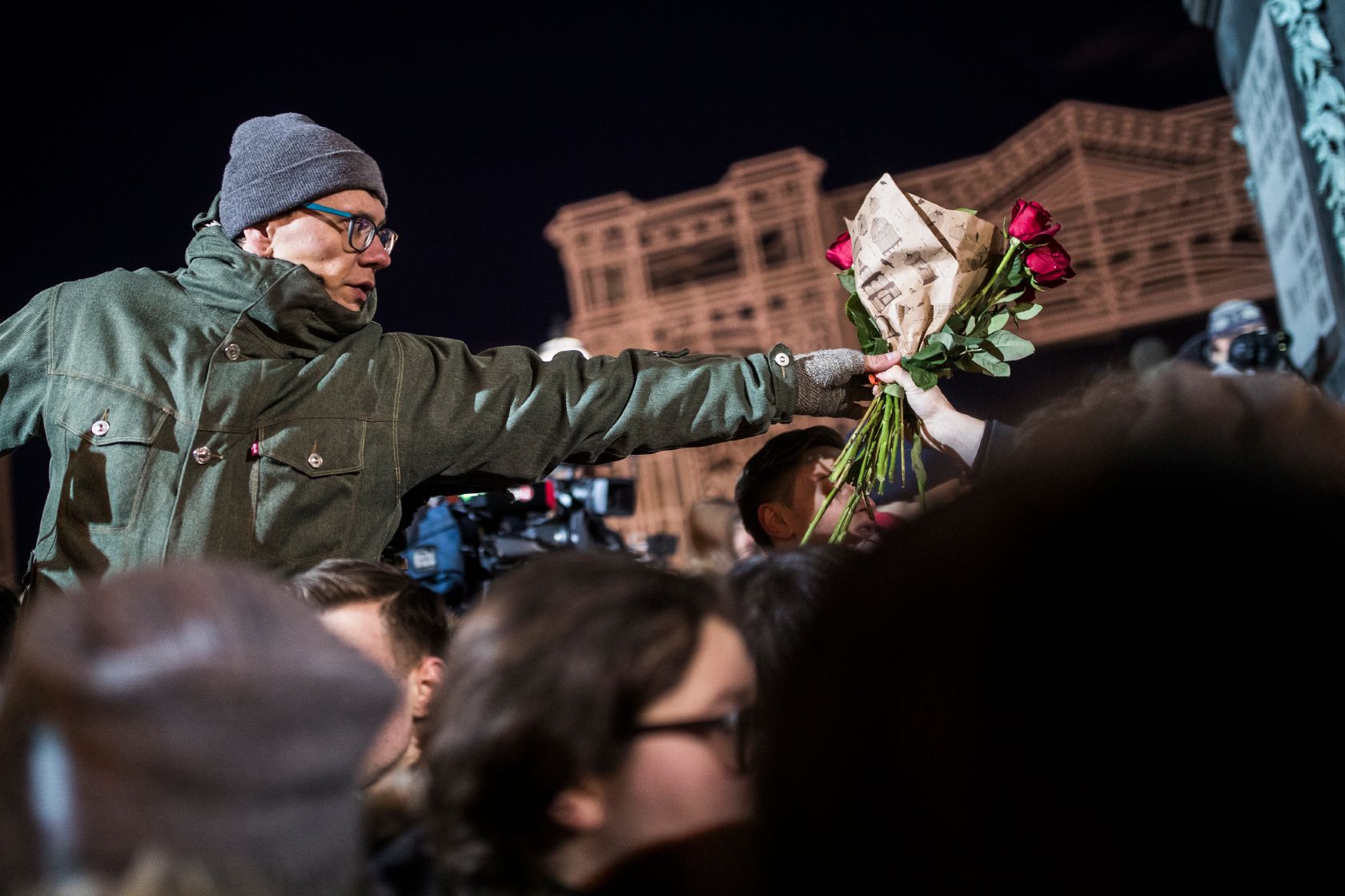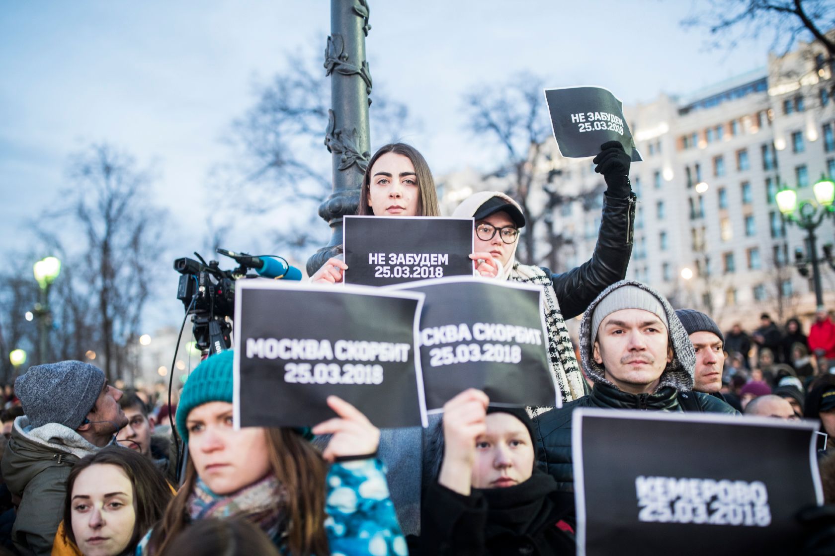 Вечером 27 марта в центре Москвы прошли две акции в память о погибших во время пожара в кемеровском торговом центре. Одно, на Пушкинской площади, еще накануне начали готовить в фейсбуке, другое, на Манежной — решили в срочном порядке провести московские власти. Несмотря на то что акции были организованы по-разному, корреспондент «Медузы» Евгений Берг и у стен Кремля, и на традиционном месте оппозиционных митингов увидел искренне скорбящих москвичей.