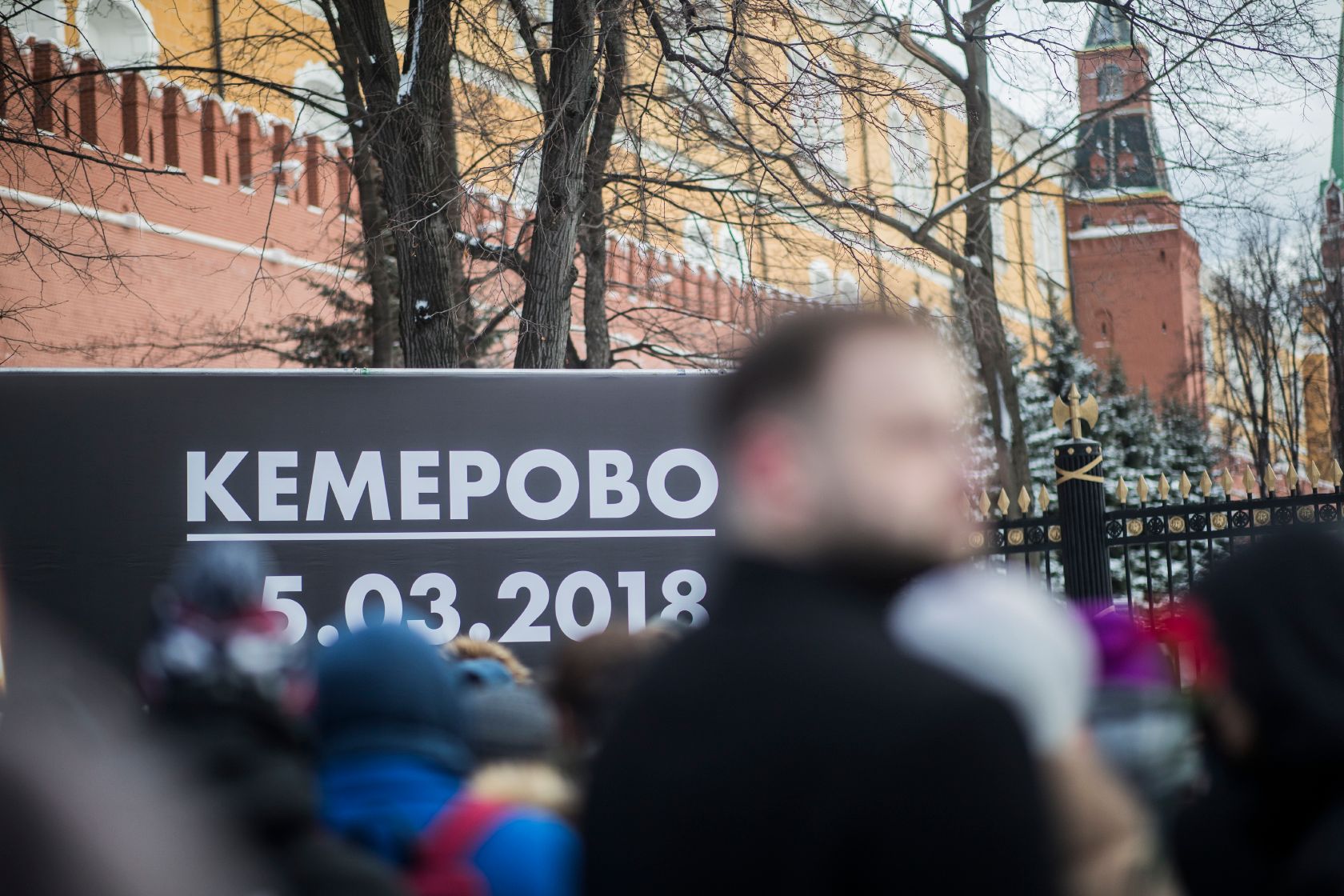 Туристы из Азии не слишком хорошо понимали, зачем им дали гвоздики. Они стояли с цветами посреди Манежной площади, беспомощно озираясь. Вокруг с такими же гвоздиками ходили несколько сотен людей. В 17:00 вечера 27 марта в центре Москвы городские власти организовали акцию памяти погибших в пожаре в кемеровском торговом центре «Зимняя вишня».