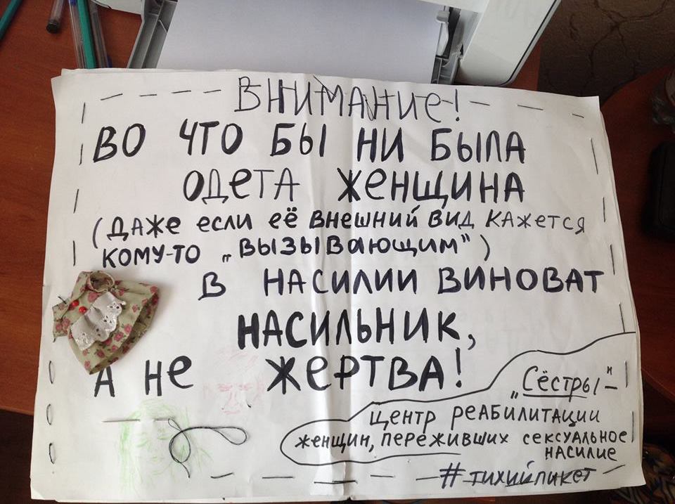 Два года назад жительница Москвы Дарья Серенко начала делать самодельные плакаты и ездить с ними в метро. Девушка назвала акцию «тихийпикет». Через плакаты Серенко выступала против дискриминации, домашнего насилия, гендерных стереотипов. Вскоре к акции начали присоединяться люди из разных городов и стран. «Такие дела» попросили Дарью рассказать о самых запомнившихся плакатах, сделанных за два года существования проекта.