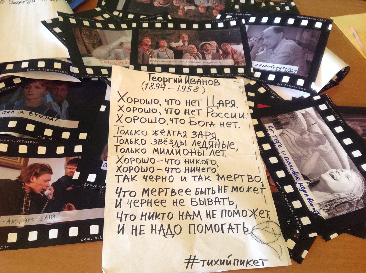 За эти два года с плакатом в руках мои ожидания от возможных коммуникаций оказались полностью разрушенными. Мы не можем предсказать реакцию, не можем спрогнозировать разговор, мы не делаем обобщающих выводов о людях и чувствах. Девиз тихогопикета — «когда опускаются руки, руки не опускаются» — это девиз, рожденный в политическом отчаянии, но каждый раз заново утверждающий необходимость говорить.