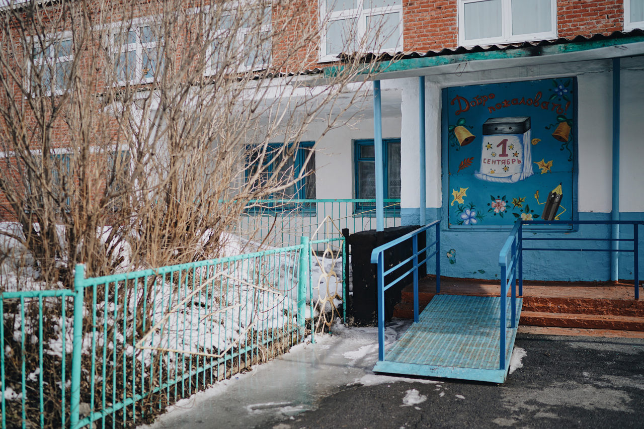Вход в школу, в которой учились дети, погибшие при пожареФото: Антон Уницын для ТД