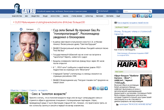 Роскомнадзор собирается заблокировать сайт Gay.ru за гей-пропаганду