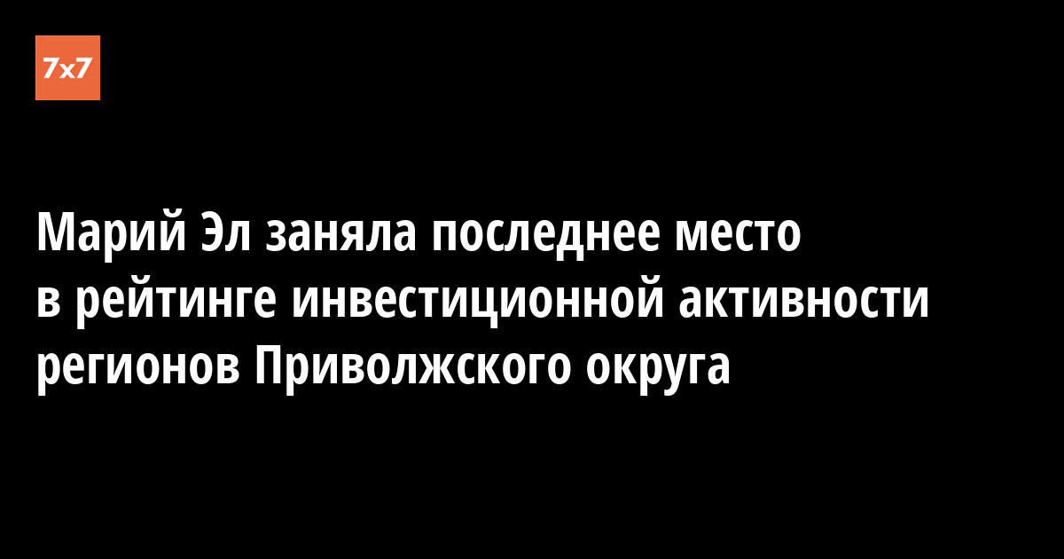 Марий Эл заняла последнее место в рейтинге инвестиционной активности регионов Приволжского округа