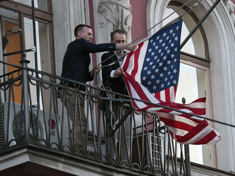 Сотрудники генерального консульства США в Санкт-Петербурге сняли со здания на Фурштатской улице государственный флаг, передает "Интерфакс". Здание генконсульства МИД велел закрыть в рамках "зеркальных" мер в ответ на высылку российских дипломатов из Штатов.