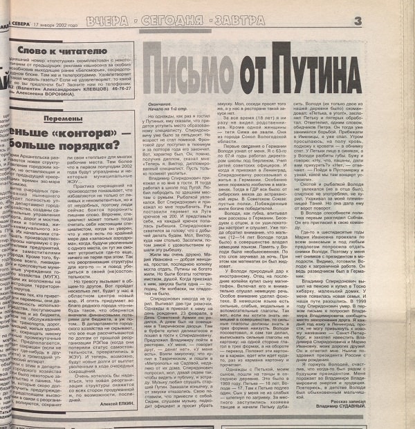 Правда открылась случайно, когда в интернете мне попалась статья в региональной газете “Правда Севера” (Архангельск) от 17 января 2002 года.