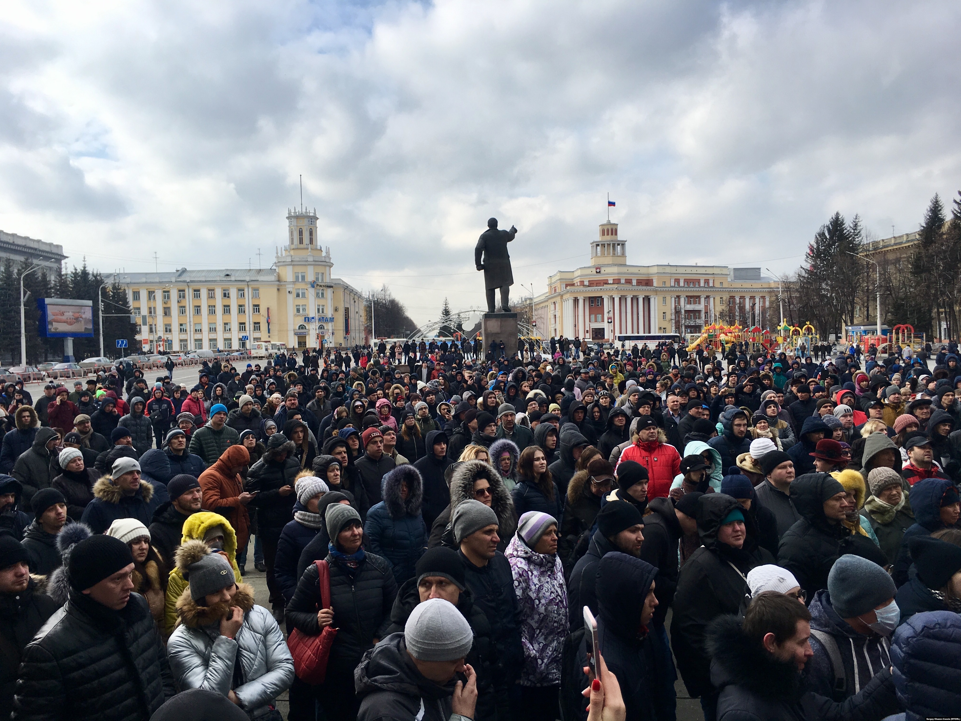 27 марта несколько сотен жителей Кемерова собрались на стихийный митинг у здания областной администрации. Они потребовали от властей рассказать правду о пожаре в торговом центре "Зимняя вишня". Участники митинга также высказали недовольство работой спасателей и настаивали на проведении честного и тщательного расследования трагедии. Люди кричали: "Правду!", "В отставку губернатора!" и "Путина". Ни президент, ни губернатор Кузбасса Аман Тулеев к протестующим не вышли.