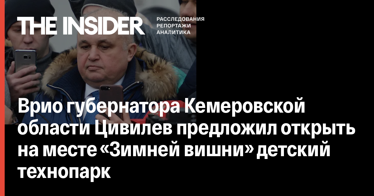 Врио губернатора Кемеровской области Сергей Цивилев предложил создать на месте торгового центра «Зимняя вишня» в Кемерове детский технопарк с мемориалом. Об этом сообщается на сайте администрации области.