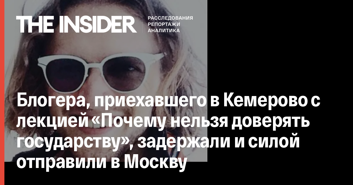Блогера, приехавшего в Кемерово с лекцией «Почему нельзя доверять государству», задержали и силой отправили в Москву