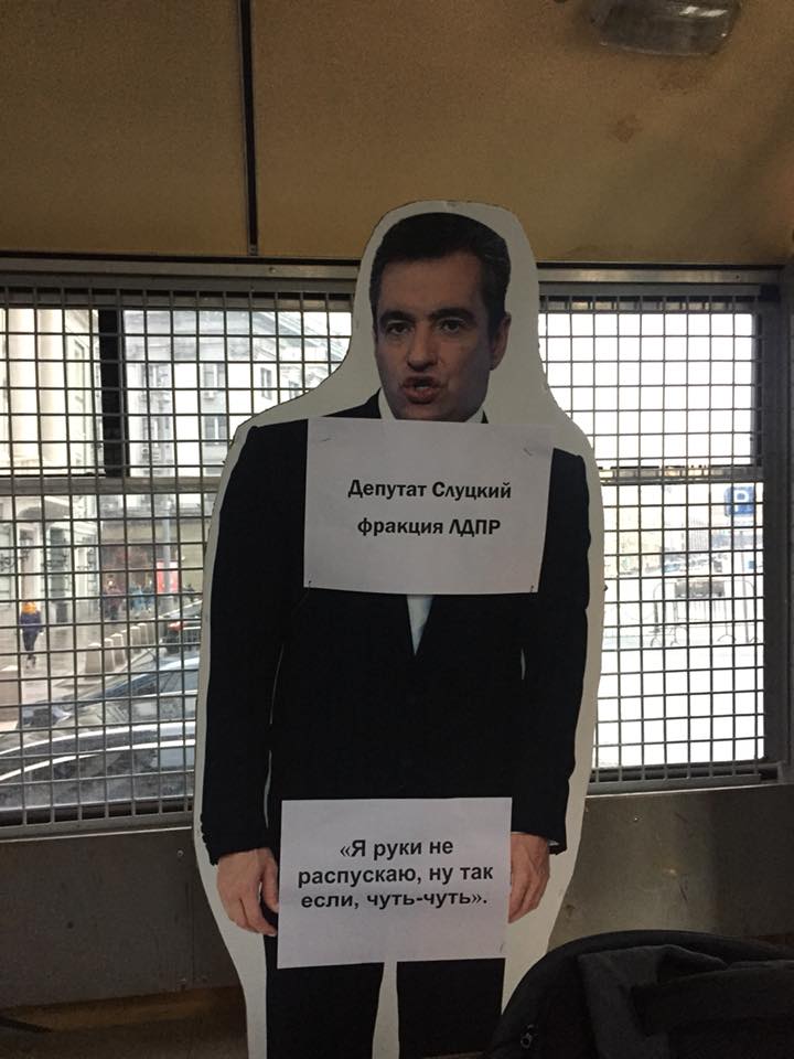 У Госдумы задержали активистку с картонной фигурой Слуцкого