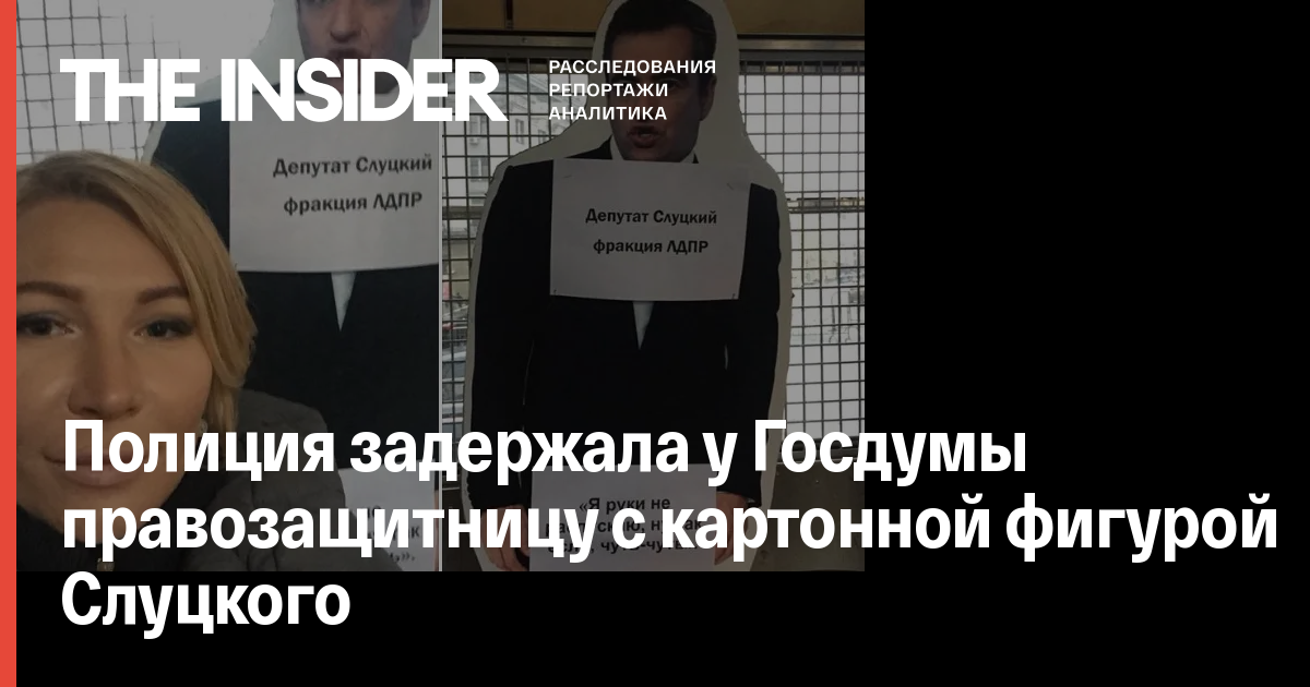 Полиция задержала у Госдумы правозащитницу с картонной фигурой Слуцкого
