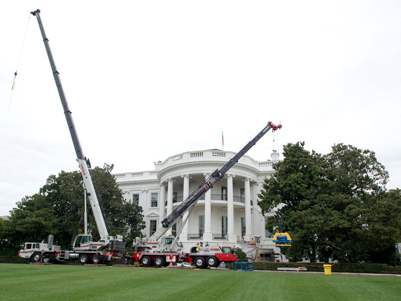 Масштабные работы на северной лужайке у западного крыла Белого дома (там находится кабинет президента) начались в 2010 году. Стоимость, по официальным данным, составила 376 млн долларов. Из-за привлечения множества экскаваторов в Сети работы стали называть Big Dig - "Большие раскопки". По официальным данным, тогда обновили электропроводку, а также систему кондиционирования.