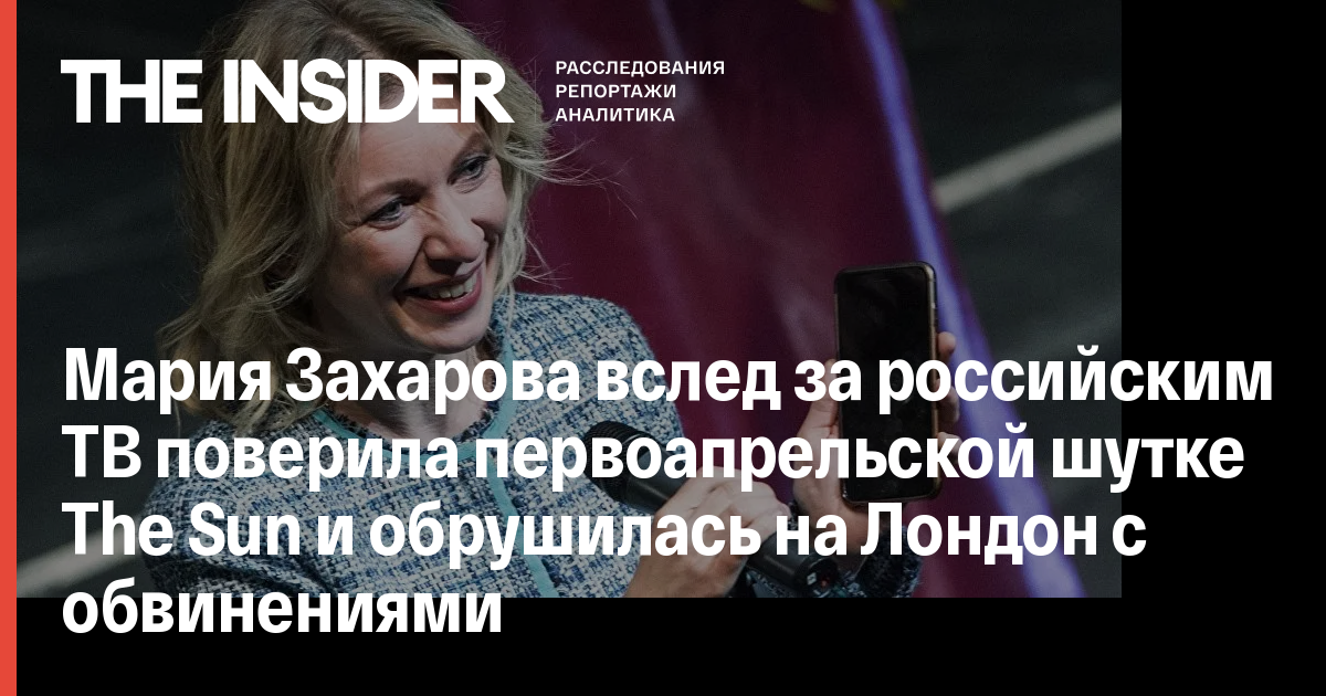 Мария Захарова вслед за российским ТВ поверила первоапрельской шутке The Sun и обрушилась на Лондон с обвинениями