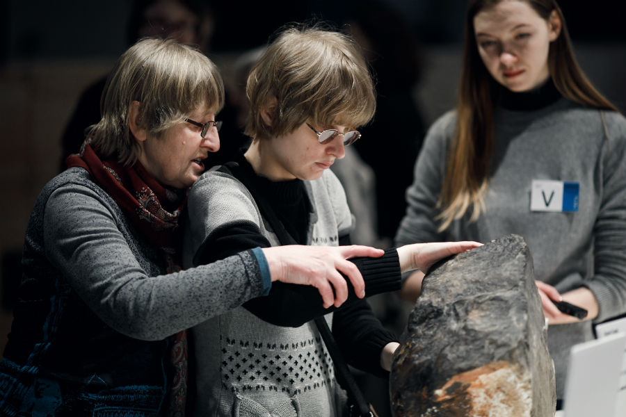 «Когда мы договаривались с авторами, первое, что мы спрашивали — дадите ли вы трогать свою работу, — говорит сокуратор выставки Вера Рейхет. — Мы старались [подбирать такие скульптуры], которые можно понять без визуального осмотра. Если это человек, то ясно, что это человек, чтобы это было что-то не совсем абстрактное».