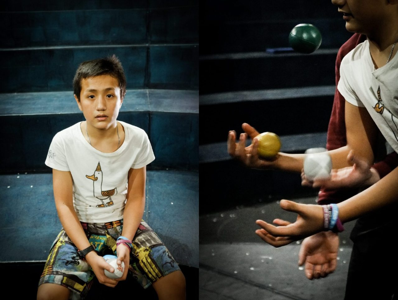 Анвар жонглируетФото: Лиза Жакова для ТД «Тася меня читать заставляет, — говорит Анвар так, будто речь идет о принудительном поедании любимых пирожных. — Подсовывает книгу, я читаю в метро, или в перерывах между занятиями, и даже в школе на перемене, а потом прихожу и рассказываю ей, что прочитал». Сейчас Анвар читает и пересказывает социальным работникам «Человека-амфибию». А в цирке с этого года вместе с ним занимается его младший брат и еще трое детей из семей мигрантов.