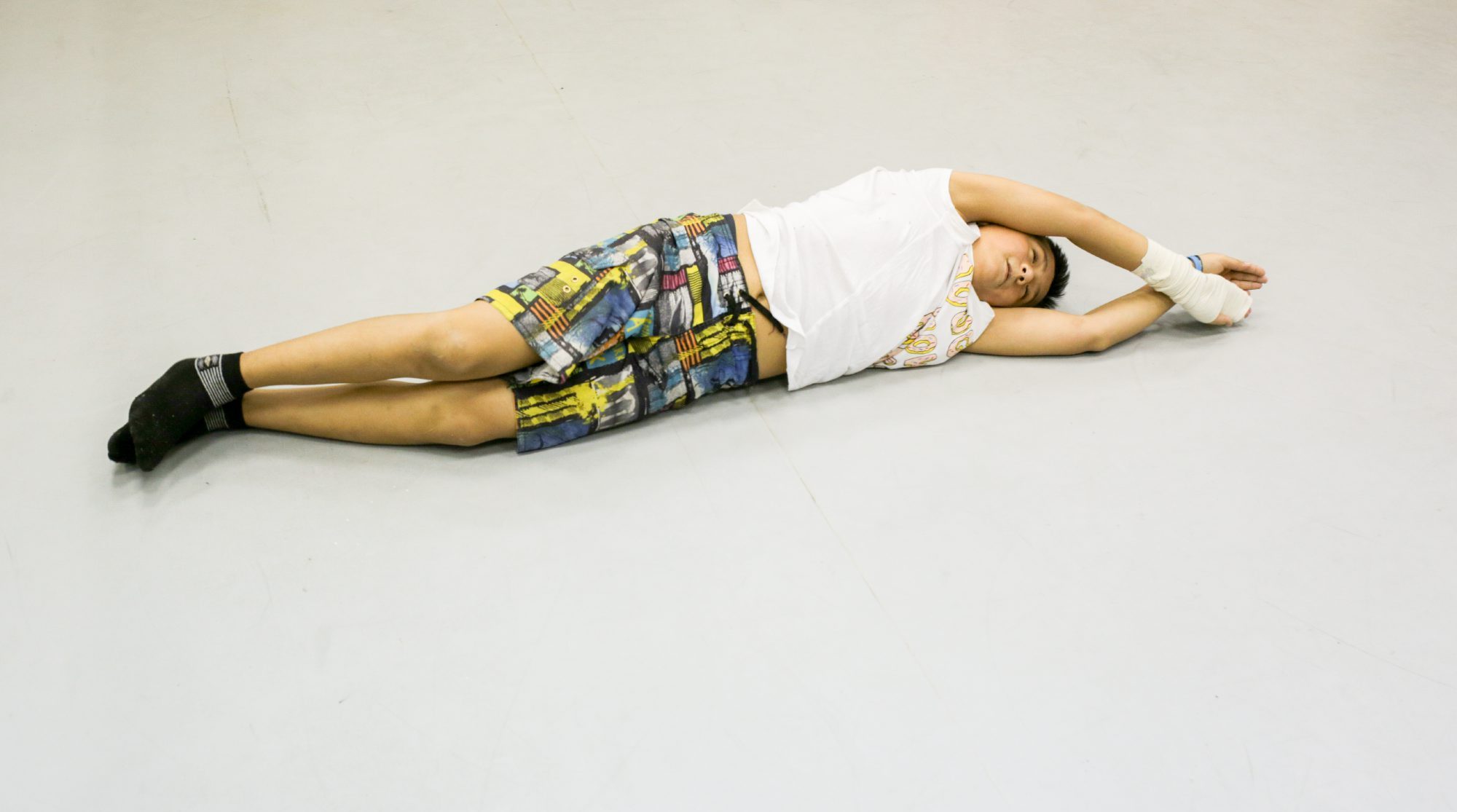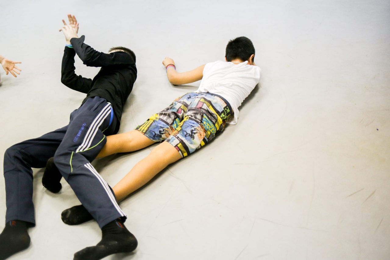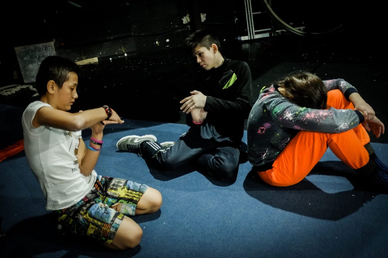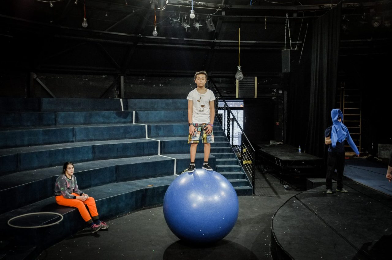 На тренировкеФото: Лиза Жакова для ТД В будущем спектакле ребята будут рассказывать историю, осваивая новые умения и приемы, с которыми только сейчас начинают знакомиться. Например, контактное жонглирование. Анвар изображает руками невидимый шар и начинает катать его в воздухе, осторожно следя за его перемещениями, проживая его траекторию так, словно он и есть этот шар.