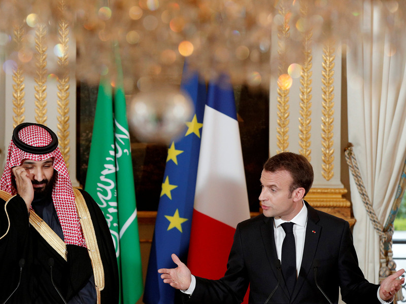 После переговоров с наследным принцем Саудовской Аравии Мухаммедом ибн Салманом французский лидер объявил, что он примет решение об ответных шагах Парижа после переговоров со своими коллегами - президентом США Дональдом Трампом и премьер-министром Великобритании Терезой Мэй.