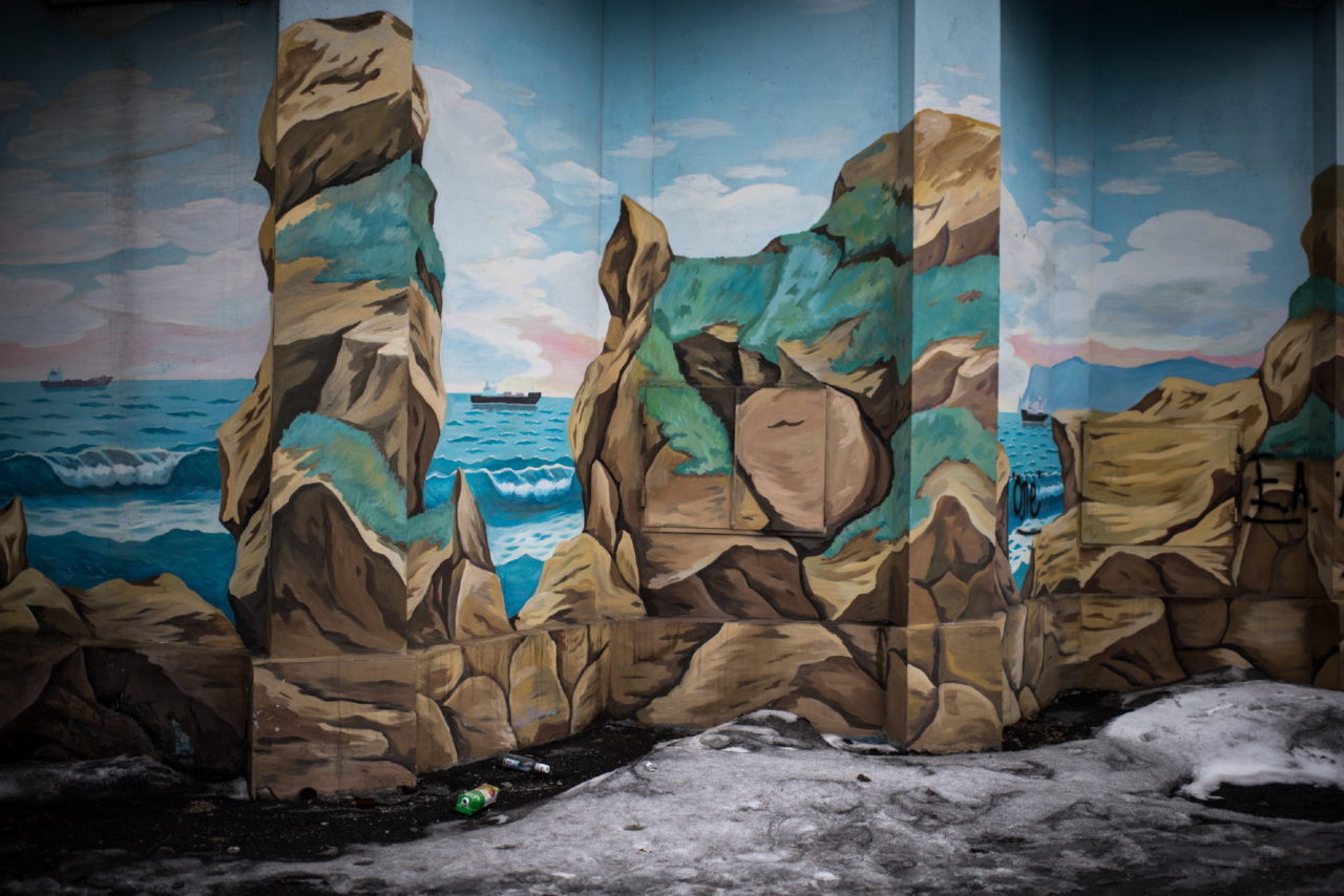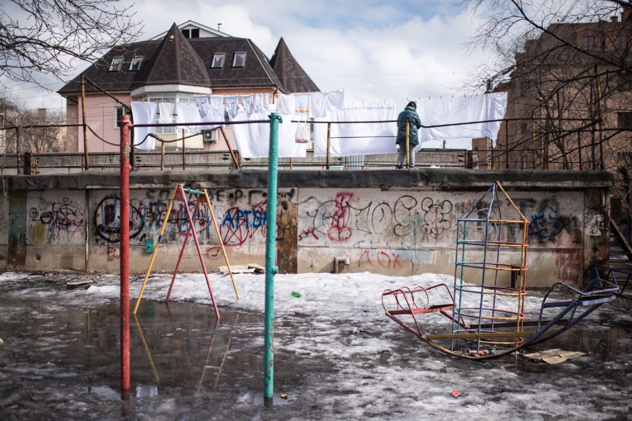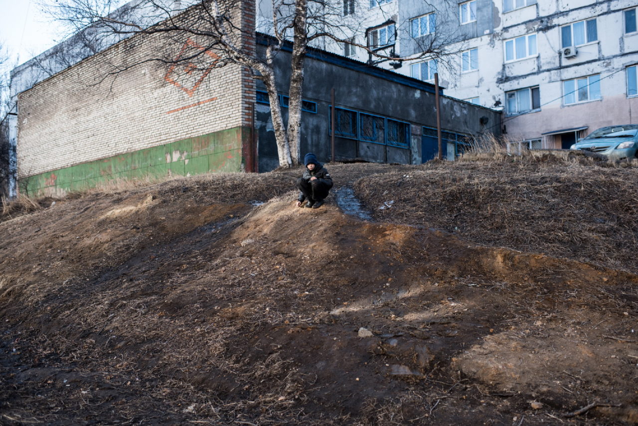 К ней подбегают дочери, у обеих яркие куртки покрыты плотным слоем черной грязи. За ее спиной жилой дом, на нем баннер: «Продам квартиру». Полотнище тоже грязно-серое от угольной пыли. «Мыс Астафьева» — самый грязный район Находки. Здесь работают сразу три угольные компании: СУЭК, «Мечел» и «Евраз». Всего в Находке двенадцать угольных терминалов.