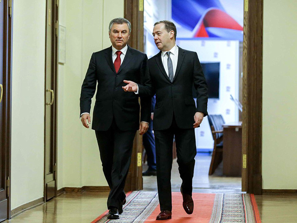 Председатель Государственной Думы Вячеслав Володин и Председатель Правительства РФ Дмитрий Медведевduma.gov.ruЕсли раньше структура правительства формировалась "под премьера", то сейчас мы видим, что премьер остается частью правительства, а другая его часть формируется из оппозиционных к премьеру, к его структуре управления фигур. Имеется в виду не либеральная оппозиция, а, напротив, системная оппозиция. Точнее, это даже не политическая оппозиция, а оппозиция структурная.
