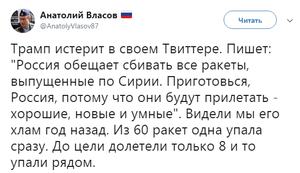 Также пользователей сбило с толку второе сообщение Трампа, в котором он высказал свое намерение сотрудничать с Россией. Напомним, в первом посте американский президент пригрозил России ракетными ударами по Сирии.