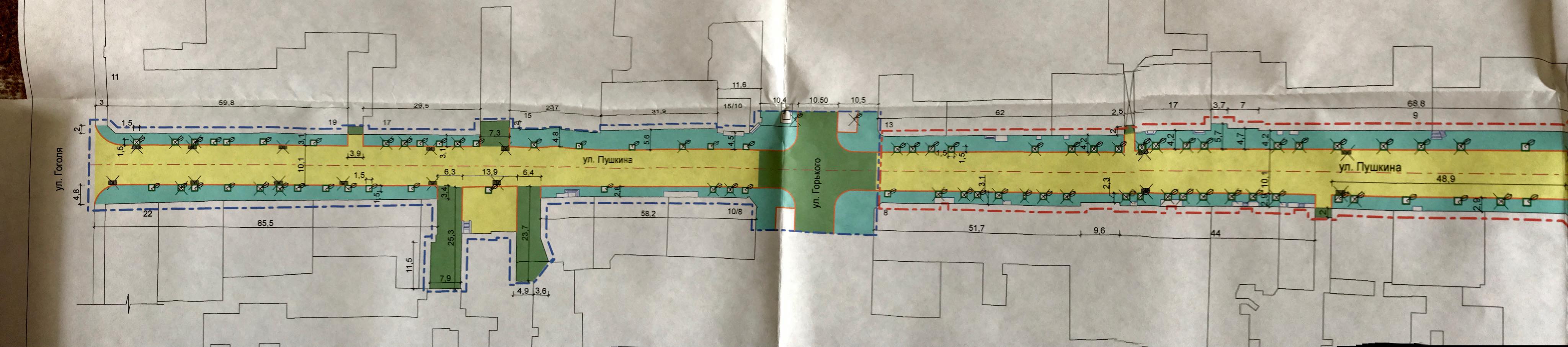 – Начинают новую аферу – вторую очередь реконструкции центра города, от улицы Гоголя до улицы Горького. На схеме обозначено синим пунктиром.