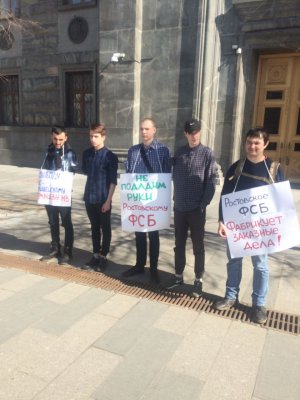 Участники акции выступали в защиту бывшего полицейского Николая Гермашева и держали плакаты с надписями «Не подадим руки Ростовскому ФСБ!», «Свободу экс-полицейскому Гермашеву Н.В.!" и «Ростовское ФСБ фабрикует заказные дела!». У всех активистов было видно наличие лишь одной руки.