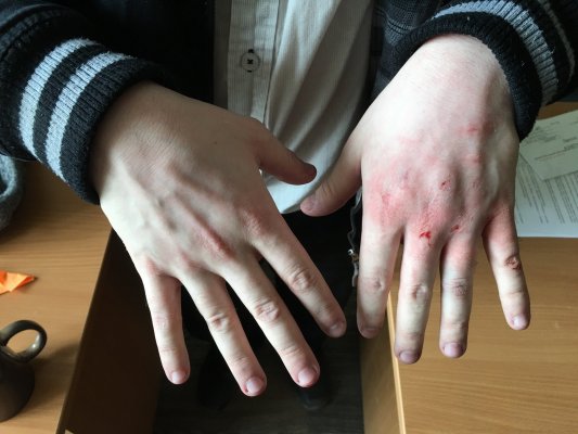 Дмитрий Калинин рассказал об избиении в фейсбуке. На него напали утром 13 апреля по пути на работу. Неизвестные ударили его сзади по голове и продолжали бить его после падения. Правозащитник получил несколько гематом.