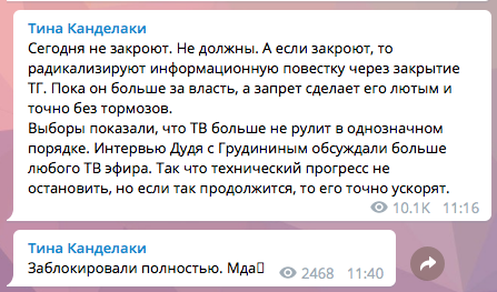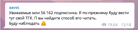 Параллельно авторы популярных каналов выступают против цензуры и заявляют, что не собираются уходить из мессенджера.