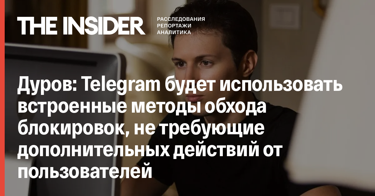 Основатель Telegram Павел Дуров пообещал, что Telegram будет использовать встроенные методы обхода блокировок, которые не требуют дополнительных действий от пользователей. Об этом он заявил на своей странице во «ВКонтакте».