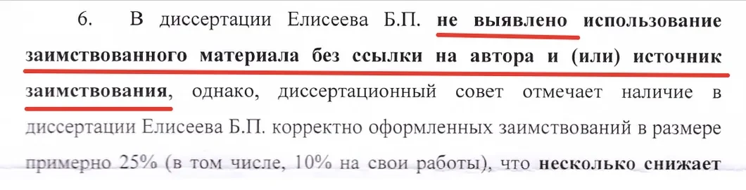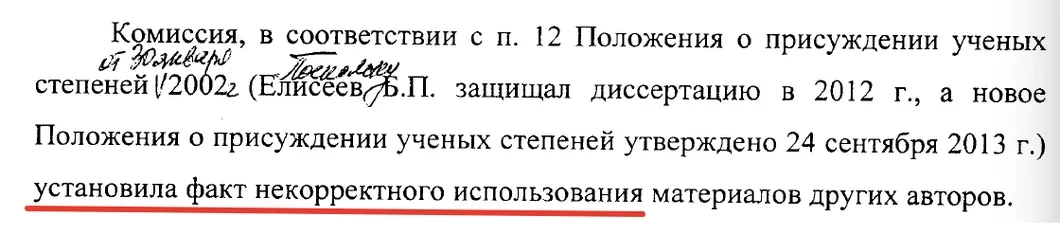 Диссертационный совет института, где начал торговлю диссертациями еще Борис Березовский, сначала хотел лишить ректора Елисеева степени, а потом, обидевшись, передумал. Экспертный совет ВАК оправдал ректора, не изучая материалы дела в полном объеме и не ответив на поставленные перед ним вопросы.