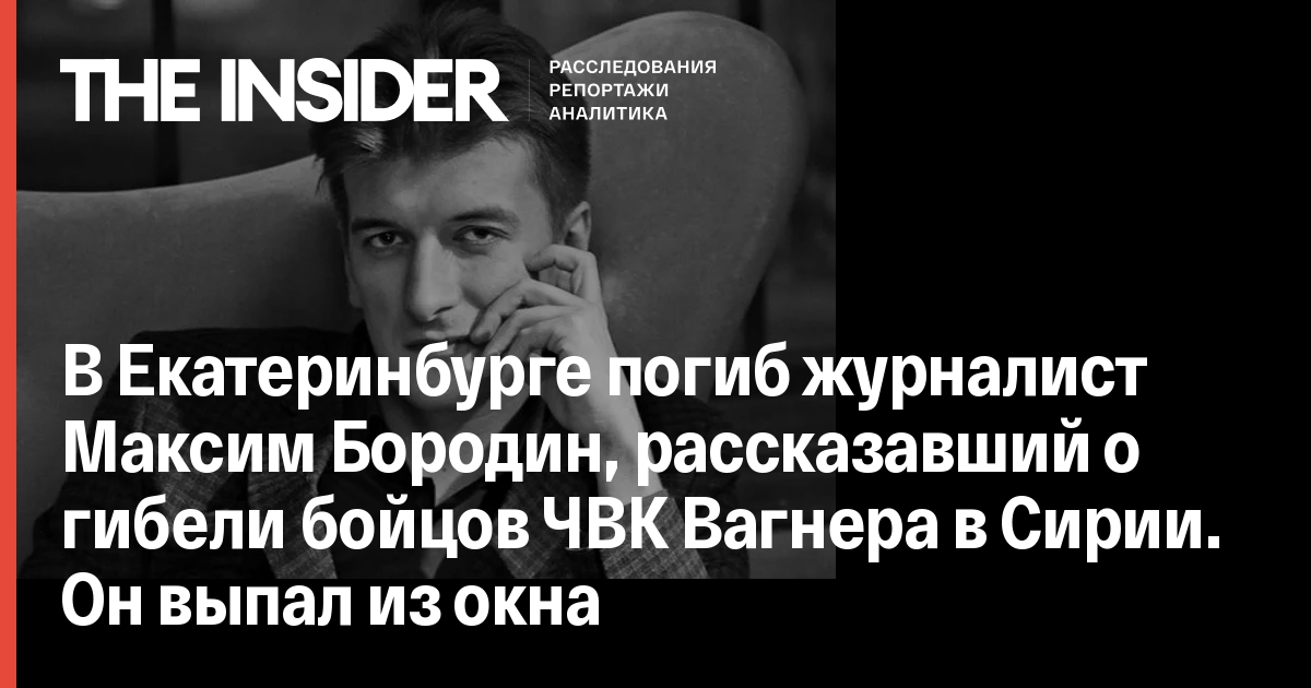 В Екатеринбурге погиб журналист Максим Бородин, рассказавший о гибели бойцов ЧВК Вагнера в Сирии. Он выпал из окна