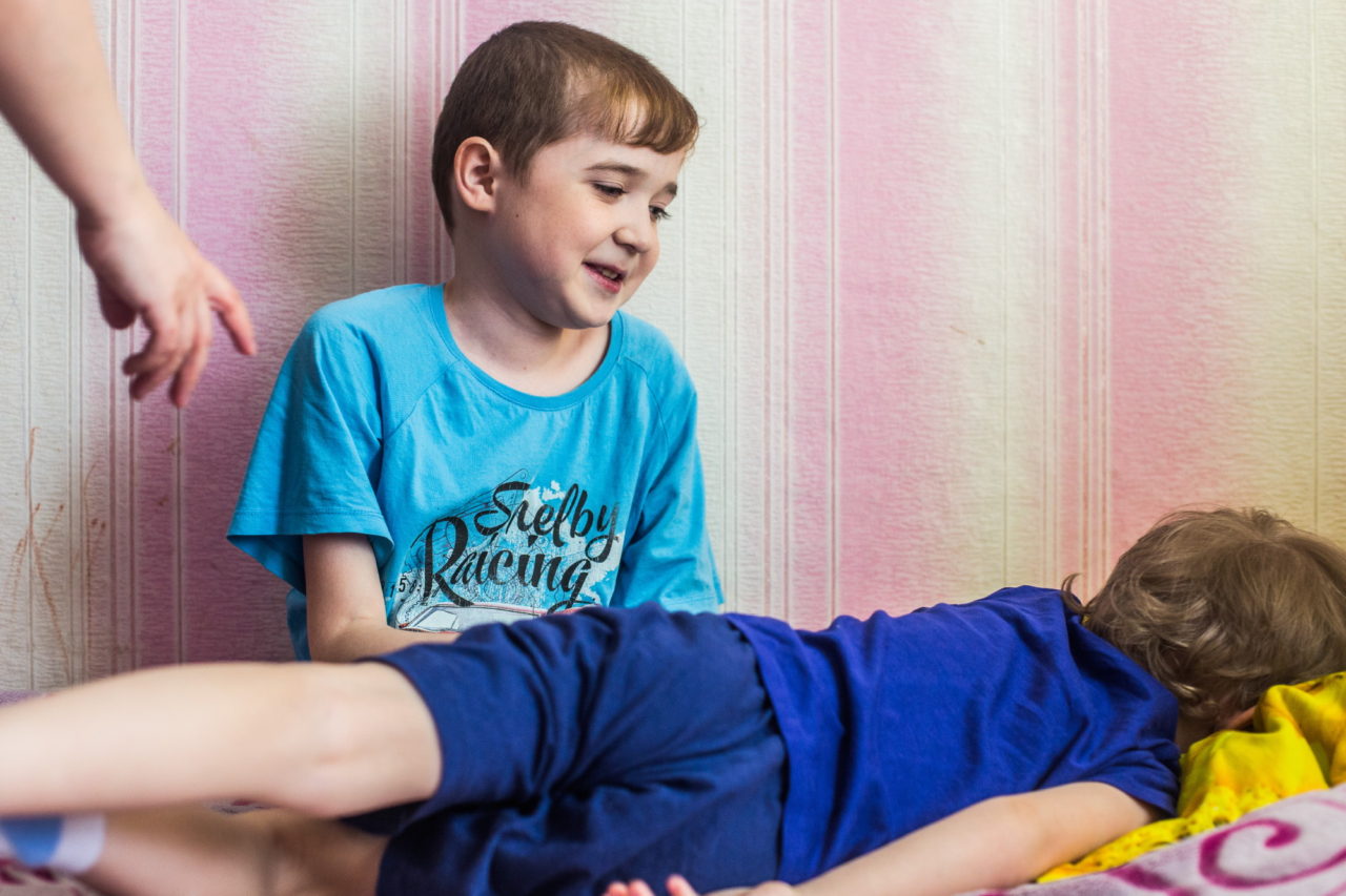 «В садике Илюшка одевался последним. Мы списывали это на телосложение — он был пухленьким, хорошеньким, щекастым. Интеллектуально развивался наравне с другими, — вспоминает Алена Двинина, мама мальчика. — Я тогда в садике работала помощником воспитателя — прибегу, помогу. Потом стала замечать: мы идем, а он все время спотыкается. Думала, ребенок просто неуклюжий. Но когда Илья пошел в школу, начал падать постоянно. С портфелем идет и может рухнуть. Я стала его провожать и встречать».