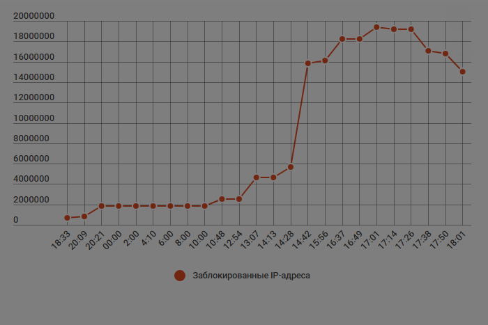 Сколько миллионов IP-адресов заблокировал Роскомнадзор, пытаясь заблокировать Telegram. Смотрите график