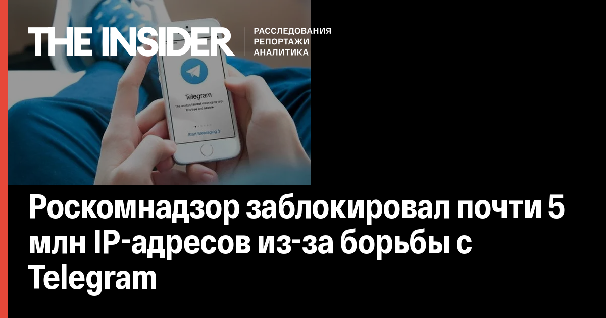 Роскомнадзор заблокировал почти 5 млн IP-адресов из-за борьбы с Telegram