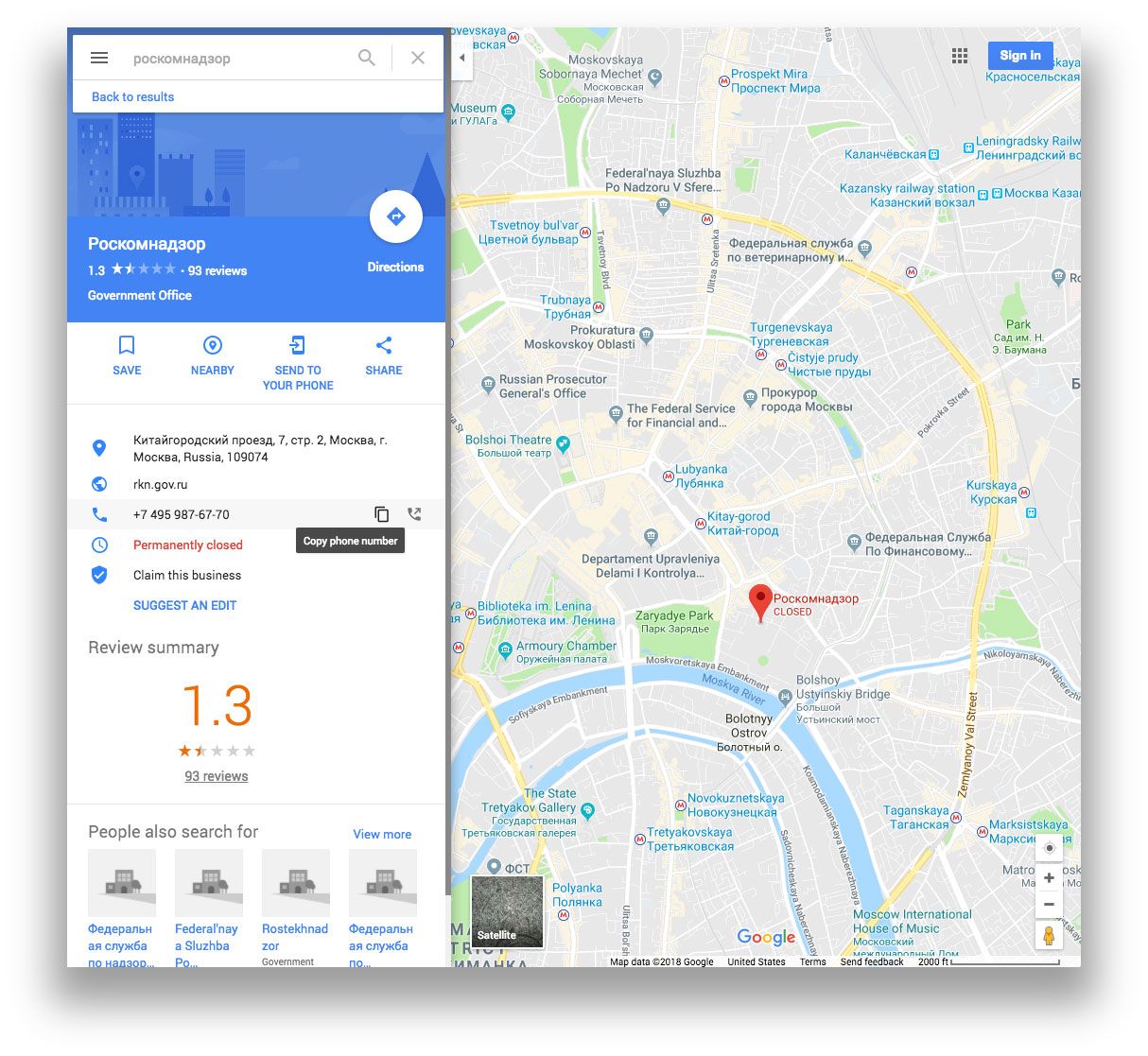 Google Maps users attack Russia's federal censor, reclassifying it as a ‘permanently closed’ ‘gay bar’