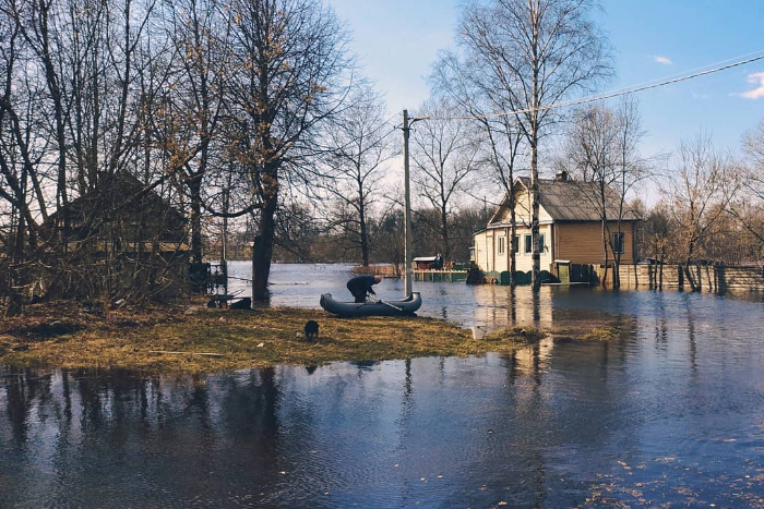 Ленобласть затопило. Житель Тихвина готовит лодку. Фотография