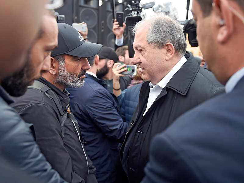 Президент Армении вышел к протестующим в Ереване и передал что-то премьеру