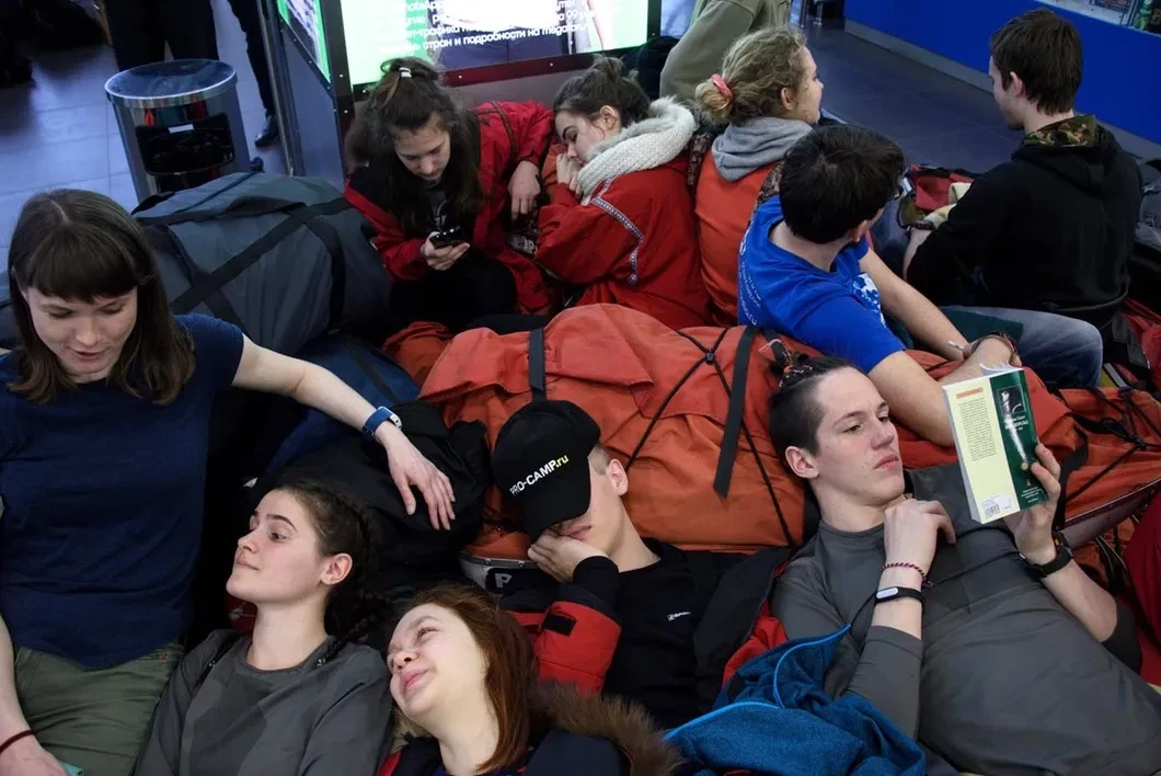 Жене — 18. Она в отряде «Полюс». Косички с яркими рыжими ниточками мелькают в аэропорту: ребята собирают и перебирают огромные баулы с вещами, которые они берут с собой. В руках у нее — сборник по подготовке к ЕГЭ по биологии.