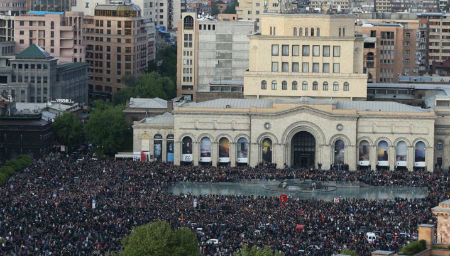 Массовые протесты в Ереване и других городах Армении продолжаются 12-й день. 17 апреля армянский парламент проголосовал за назначение Саргсяна главой правительства. "За" проголосовали 76 депутатов, кандидатуру бывшего президента не одобрили 17 парламентариев.