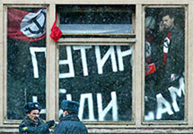 14 декабря 2004 года 40 активистов Национал-большевистской партии прорвались в здание приемной администрации президента на Ильинке и потребовали встречи с Владимиром Путиным, заявив, что уполномочены вести переговоры с главой государства от имени гражданского общества. Нацболы забаррикадировались в одном из кабинетов. Они вывесили в окно лозунг "Путин, уйди сам!" и разбросали листовки с обвинениями в фальсификации выборов, политических репрессиях, убийстве заложников "Норд-Оста" и Беслана и других преступлениях. В тот же день все 40 человек были задержаны.