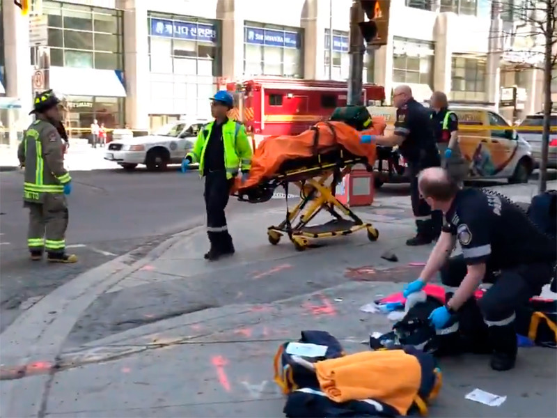 В крупнейшем канадском городе Торонто фургон наехал на пешеходов. Первоначально полиция сообщила о том, что пострадать могли от восьми до десяти человек, но впоследствии уточнила, что говорить о точном числе пострадавших пока слишком рано. Очевидцы сообщают о нескольких погибших, при этом данные расходятся.