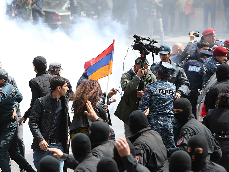 В воскресенье утром полиция в Ереване начала разгон демонстрантов с использованием спецсредств. В общей сложности к полуночи в городе были задержаны около 350 участников протеста. Накануне и в Москве полиция задержала несколько десятков человек на акции солидарности с оппозицией Армении.