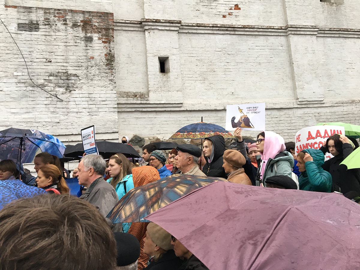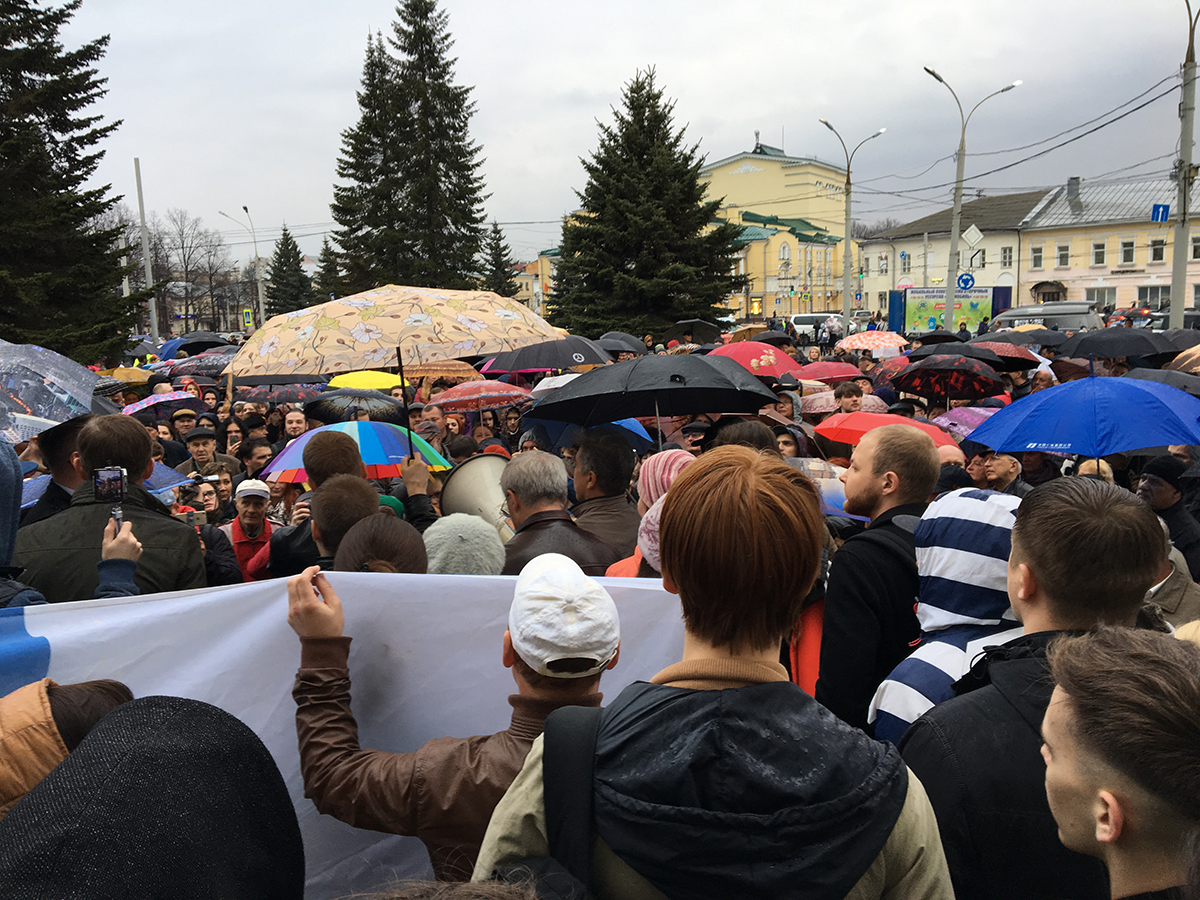 Отсутствие разрешения не отпугнуло горожан, и 18 апреля на одну из центральных площадей Ярославля вышли порядка тысячи человек. Митинг не имел политической окраски и объединил КПРФ, «Яблоко» и активистов Навального. Это была самая многочисленная публичная акция протеста за последние пять лет. Последний раз ярославцы вместе собирались в таком количестве на митинг в поддержку арестованного мэра Евгения Урлашова в 2013 году.
