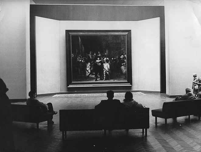 Рембрандт Харменс ван Рейн. Портрет Яна Сикса, 1654 Знаменитый портрет Яна Сикса 1654 года становится отправной точкой в рассказе не только о самом Сиксе, но и о формировании «знаточества», новых, утонченных, аристократических нравах, усваиваемых разбогатевшими голландскими буржуа, читающими «Придворного» Кастильоне и отправляющимися в Grand Tour; о книжных коллекциях, библиотеке Пфальца и о том, как ее наследником оказалась в превратностях Тридцатилетней войны Ватиканская библиотека; об увлечении стоицизмом и о классицизме, очищающем ради изящества и пристойности даже античные сюжеты. А т.н. «Ночной дозор» рассказывает не только об отрядах стрелков, но и о первом королевском визите в республику — вдовствующей Марии Медичи, о городских празднествах, расширении Амстердама — и особо о Рейксмюсеуме, его сложной истории и строительстве в 1885 г. современного здания, «храма Рембрандта».