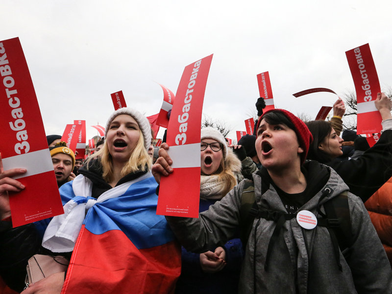 "Второе: давайте назовем вещи своими именами, а? Организаторы акции "за право быть гражданином России" и "он нам не царь" - это именно те люди, которые изо всех сил убеждали граждан России отказаться от своих гражданских прав. Не ходить на выборы президента России 18 марта. Не пытаться своими голосами противостоять Путину и поддержать его оппонентов.