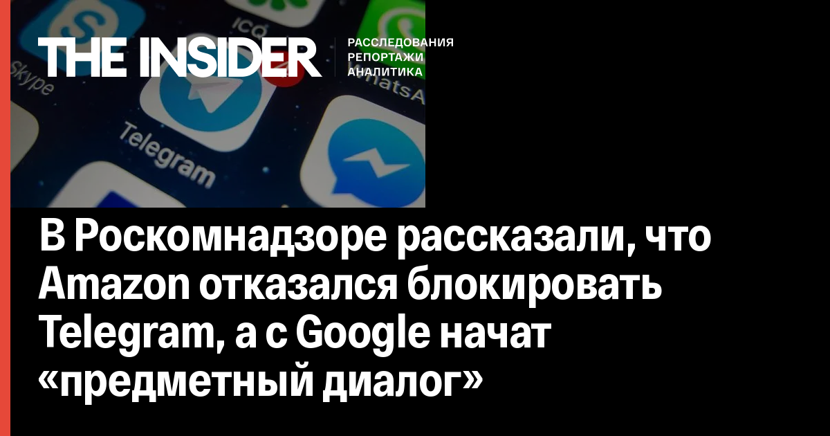 В Роскомнадзоре рассказали, что Amazon отказался блокировать Telegram, а c Google начат «предметный диалог»