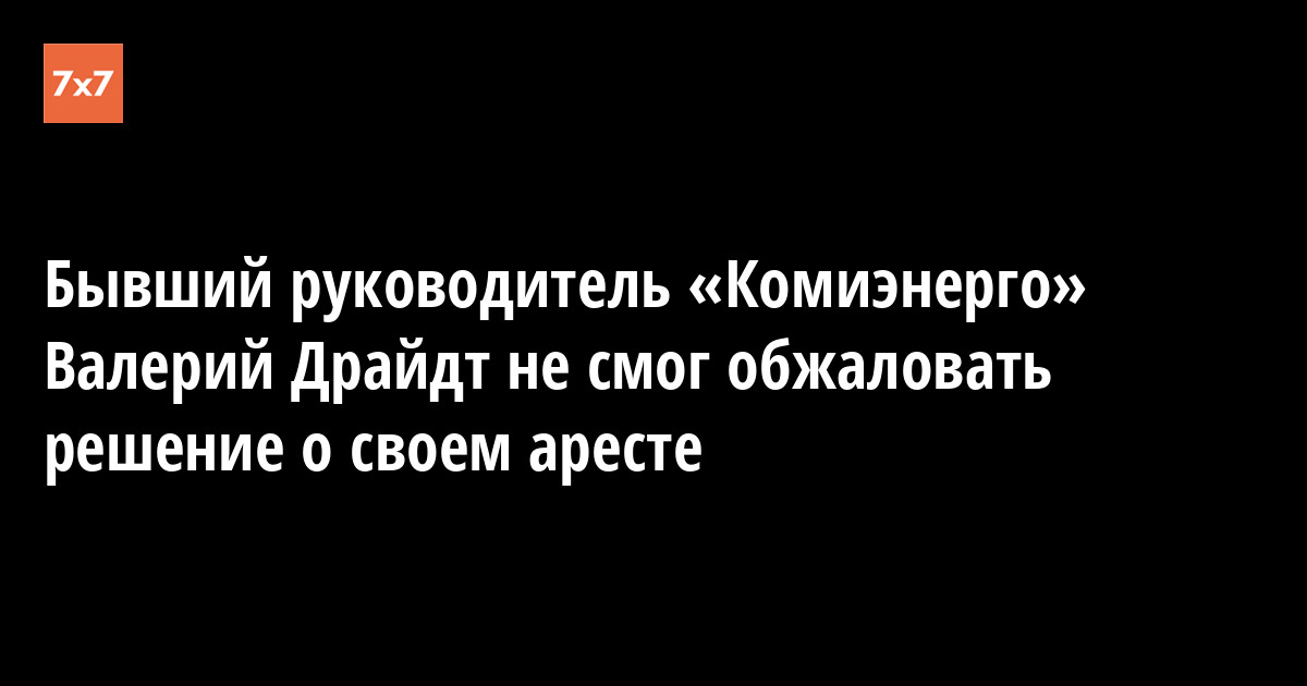 Верховный суд Коми отклонил апелляцию бывшего руководителя филиала МРСК Северо-Запада «Комиэнерго» Валерия Драйдта, который пытался добиться перевода из СИЗО под домашний арест. Об этом «7x7» 26 апреля сообщили в пресс-службе прокуратуры региона.