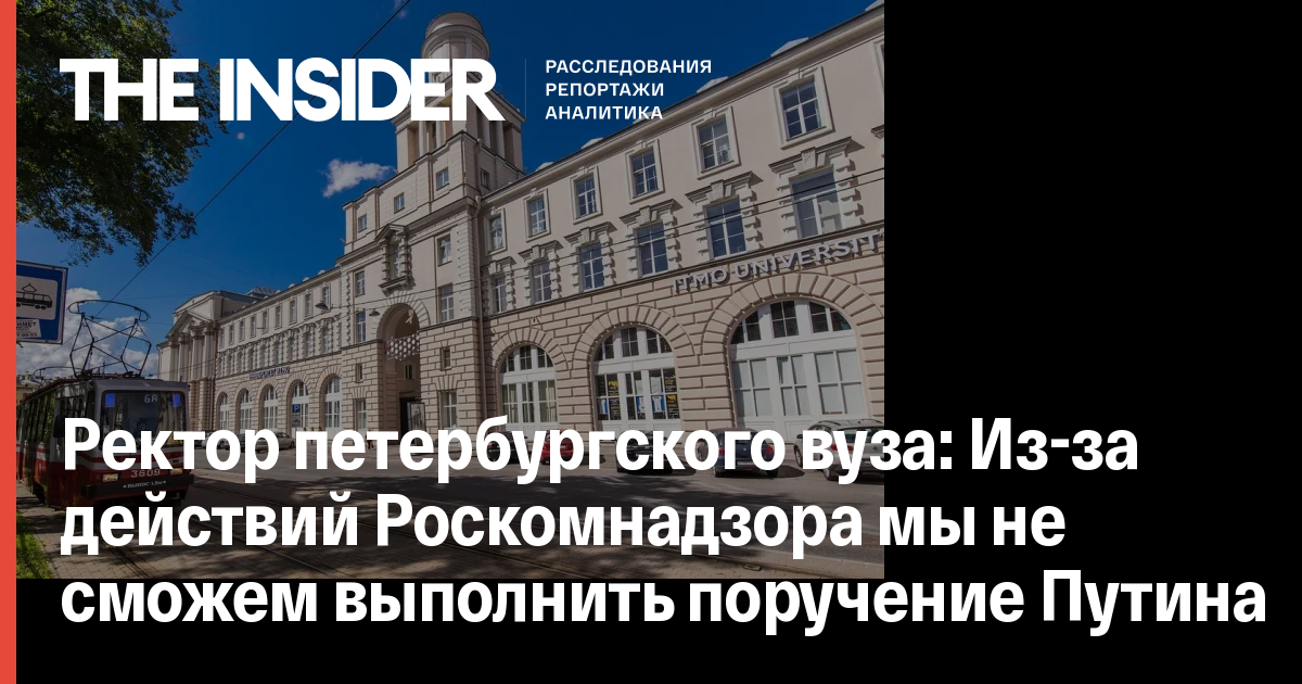 Ректор Петербургского национального исследовательского университета информационных технологий, механики и оптики (ИТМО) Владимир Васильев заявил, что из-за действий Роскомнадзора вуз не сможет выполнить поручение президента России Владимира Путина в рамках государственной программы поддержки крупнейших университетов.