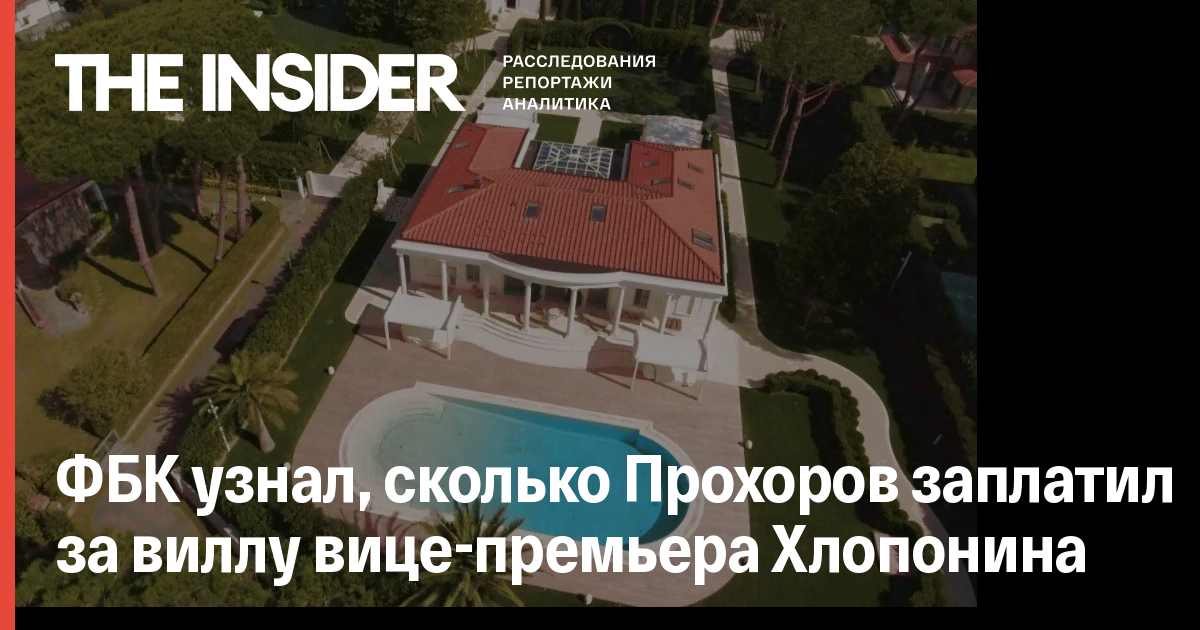 Бизнесмен Михаил Прохоров купил итальянскую виллу вице-премьера Александра Хлопонина за 35,5 миллиона евро, что, как минимум, на 25,5 миллиона евро превышает рыночную стоимость дома и участка. Об этом говорится в расследовании Фонда борьбы с коррупцией (ФБК) Навального.