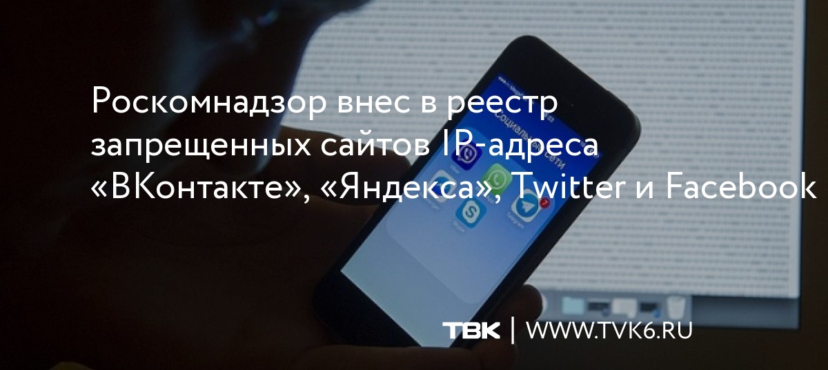 Роскомнадзор внес в реестр запрещенных сайтов IP-адреса «ВКонтакте», «Яндекса», Twitter и Facebook